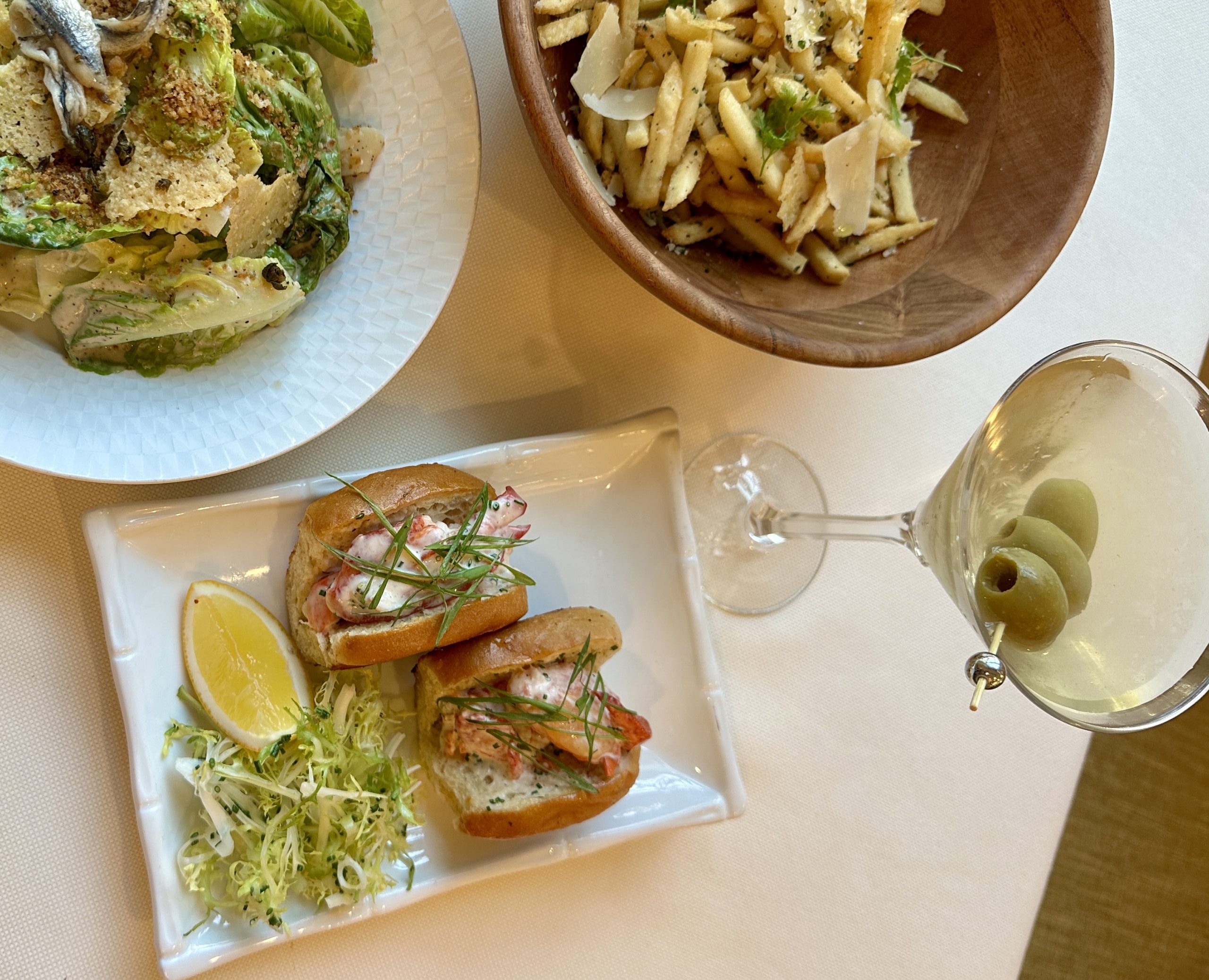 What is Girl Dinner? Well at The Lafayette, it’s a classic Caesar salad followed by crisp truffle fries and miniature lobster rolls that bring just the right amount of extra without tipping into excess. And then the “perfect pour” completes the picture: a chilled martini (you choose between cosmopolitan, dirty, or classic).