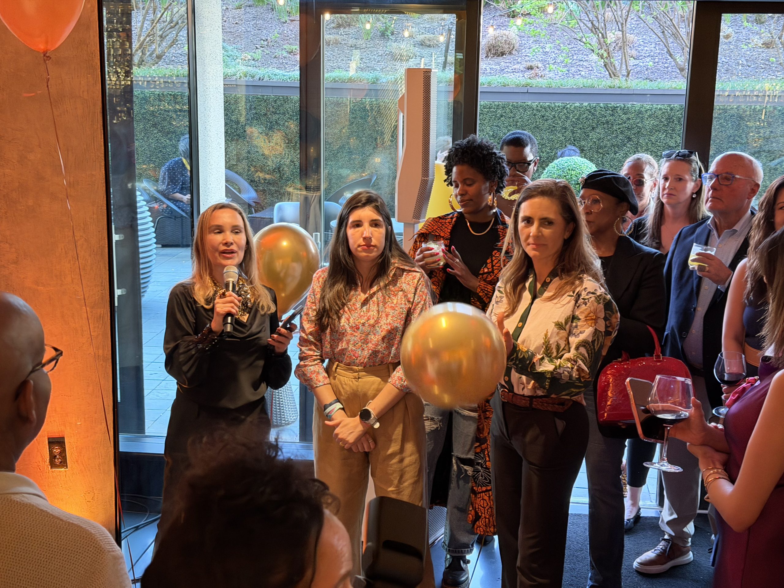 The exhibition’s opening act arrived with a playful pop of pageantry, as Junqueira unveiled a signature installation that transforms the hotel’s Next Whiskey Bar space into a buoyant, balloon-filled dreamscape. Known for her evocative explorations of memory, history, and childhood wonder, the Brazilian artist brought a sense of surreal spectacle… designed to delight and disarm.